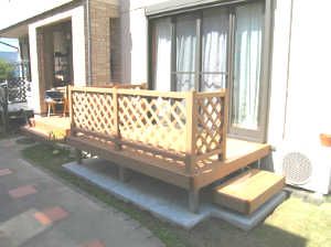 デッキの傷みもひどく、塗装もはがれ、また使い勝手も悪かったため、リビング前へ